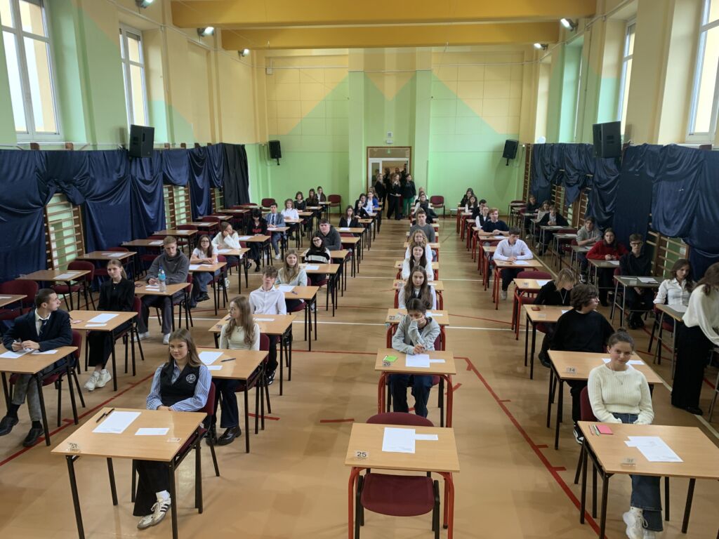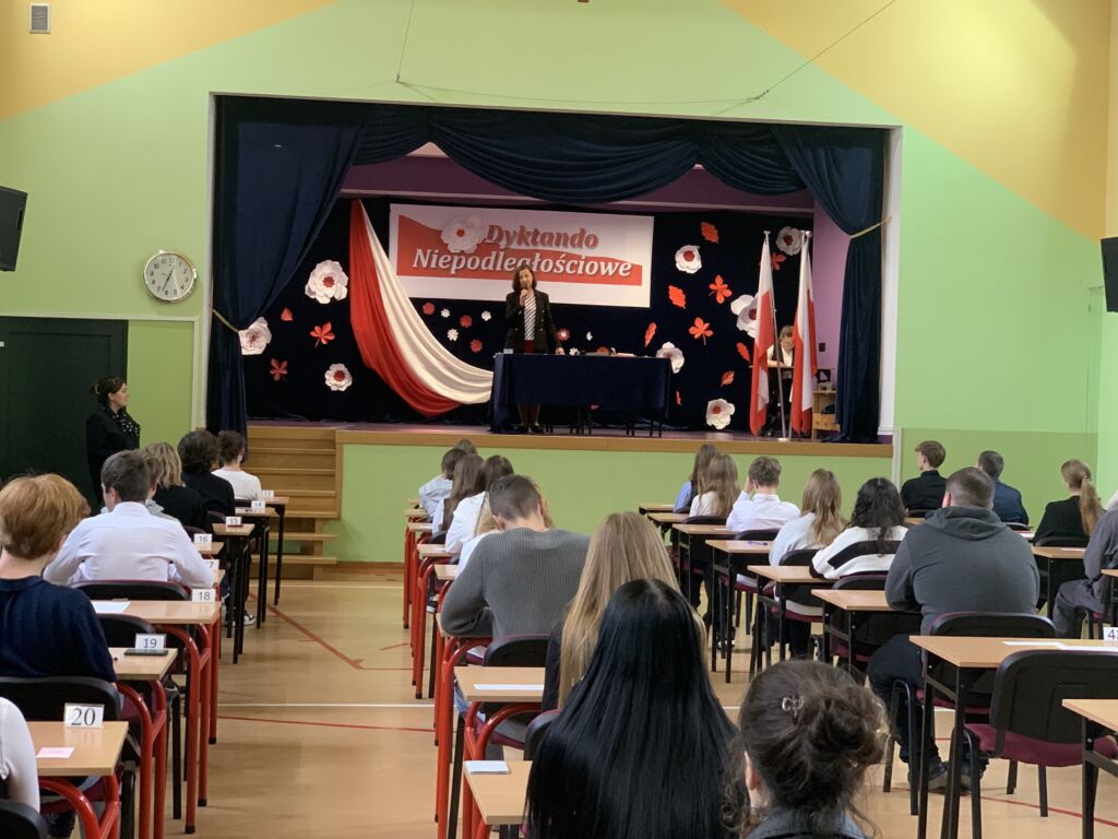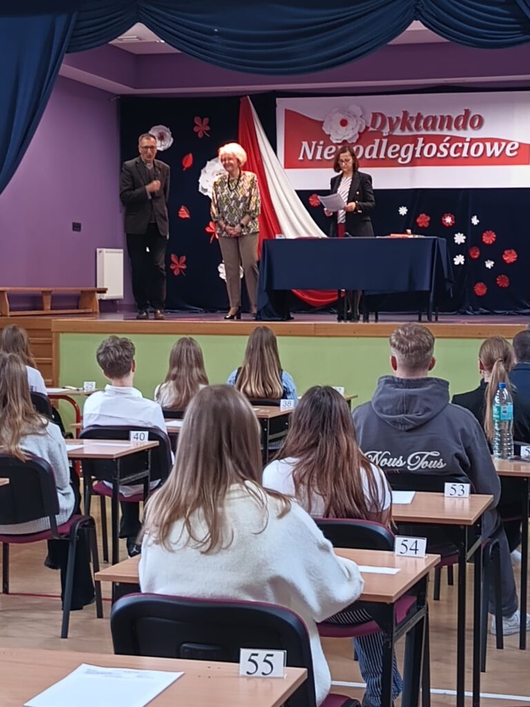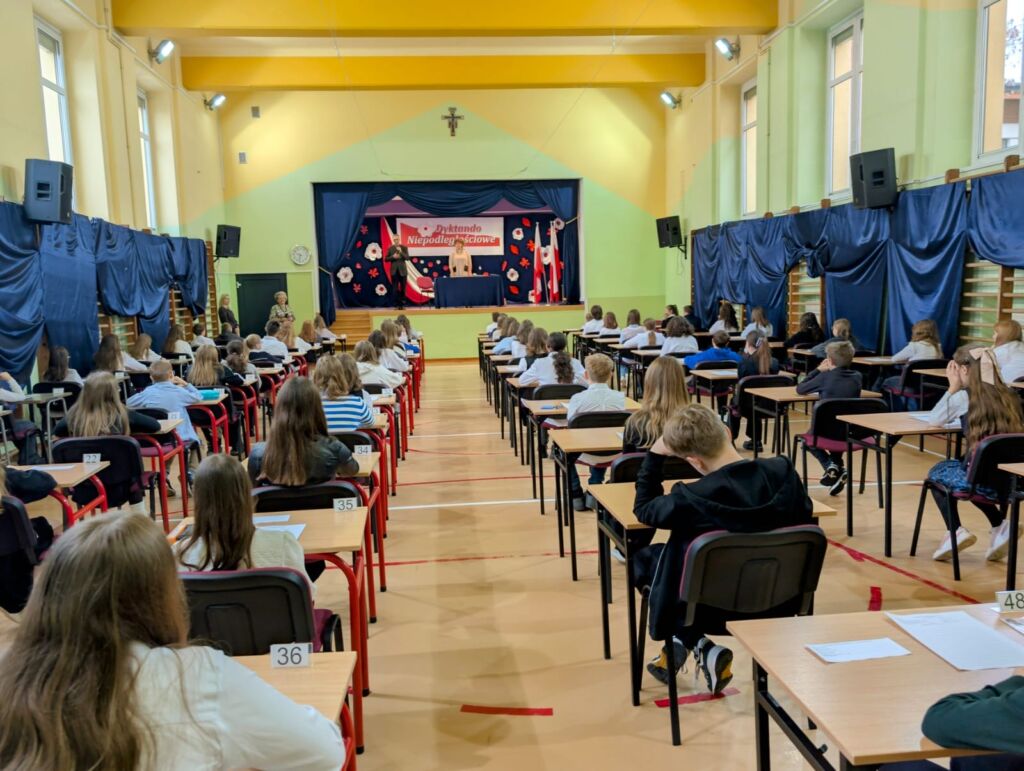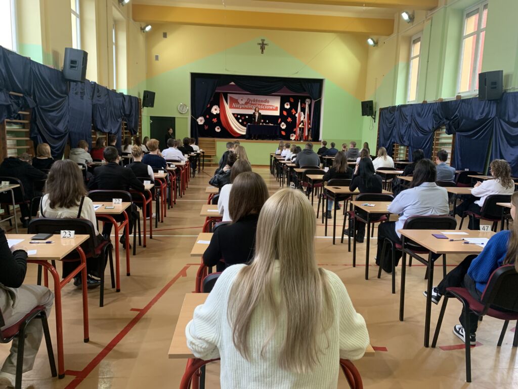 We wtorek 28 października 2025r. odbył się w naszej szkole wyczekiwany finał konkursu Dyktando Niepodległościowe „Po polsku o historii”. Gościliśmy ok. 200 uczniów z różnych szkół województwa świętokrzyskiego oraz ich opiekunów. Dyktando odbywało się w 3 kategoriach wiekowych: kl.4-6 SP, kl7-8 SP oraz szkoły ponadpodstawowe.
