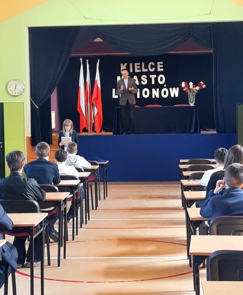 W dniu 17.04.2026r w naszej szkole odbyła się kolejna edycja wojewódzkiego konkursu Kielce – Miasto Legionów. Uczniowie 15 szkół podstawowych oraz ponadpodstawowych pisali test, który zawierał zagadnienia o tematyce patriotycznej związanej z historią naszego miasta. Zagadnienia konkursowe związane były m.in. z sylwetkami dowódców, miejscami upamiętniającymi czyn legionowy na terenie Kielc. Wyniki konkursu zostaną przesłane do poszczególnych szkół w najbliższy poniedziałek.