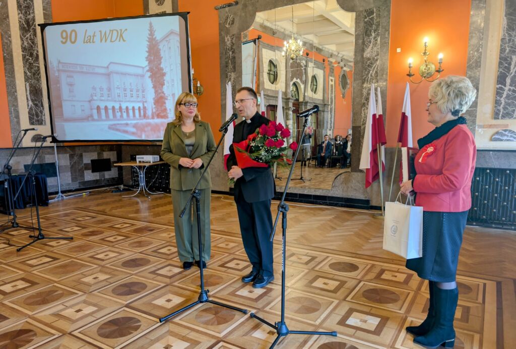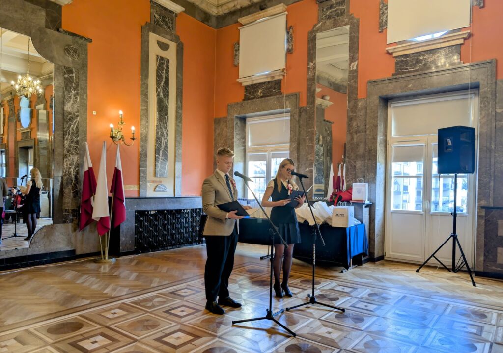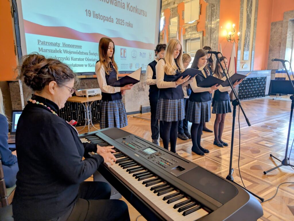W środę 19 listopada 2025 r. w sali lustrzanej Wojewódzkiego Domu Kultury w Kielcach odbyła się uroczysta gala podsumowująca XIII Ogólnopolskie Dyktando Niepodległościowe „Po polsku o historii”, podczas której zostali uhonorowani najlepsi uczniowie z regionu świętokrzyskiego. Nasza szkoła jest od siedmiu lat organizatorem dyktanda w województwie świętokrzyskim, dzięki czemu upowszechnia wśród młodzieży wartości patriotyczne, historyczne i językowe. Dbałość o piękną polszczyznę, wiedza o historii, wydarzeniach i postaciach ubiegłego wieku to cele konkursu. Teksty dyktand, zróżnicowane pod względem trudności, stosowne są do wieku uczestników, którzy konkurują w trzech kategoriach wiekowych: klas IV-VI, VII-VIII i szkół ponadpodstawowych.