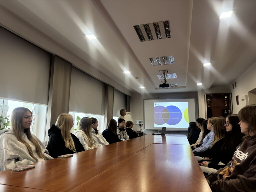 17 – 22 listopada to Międzynarodowy Tydzień Przedsiębiorczości. Z tej okazji we wtorek 18 listopada klasa IIB wraz z wychowawczynią p. dr Joanna Trelą uczestniczyła w inspirującym wykładzie w Urzędzie Statystycznym w Kielcach. Tematem spotkania było ” Gdzie szukać wiarygodnych danych o rynku pracy i gospodarce?”. Uczniowie dowiedzieli się jak korzystać z rzetelnych źródeł , analizować dane i świadomie interpretować informacje dotyczące współczesnej gospodarki oraz rynku pracy.