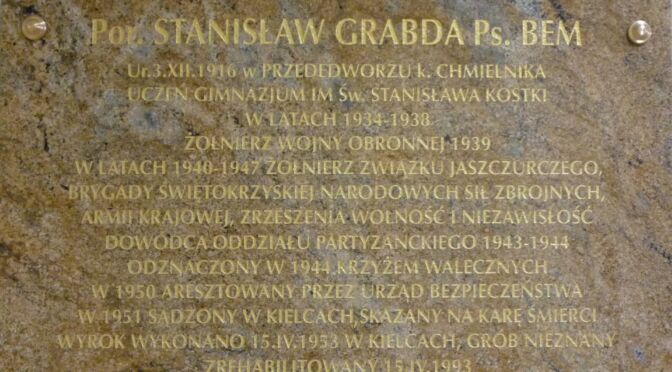 15 kwietnia 2026 r. mija 73 lata od zamordowania w kieleckim więzieniu Urząd Bezpieczeństwa kpt. Stanisława Grabdy ps. „Bem”. Urodzony 3 grudnia 1916 w Przededworzu k. Chmielnika, żołnierz WP, NSZ i AK, więzionych po wojnie przez władze komunistyczne. Zamordowany w bestialski sposób w więzieniu UB w Kielcach 15.04.1953 r., zrehabilitowany 15.04.1993 r. Jego symboliczny grób znajduje się na kieleckim cmentarzu „Piaski”.