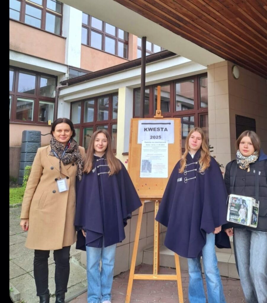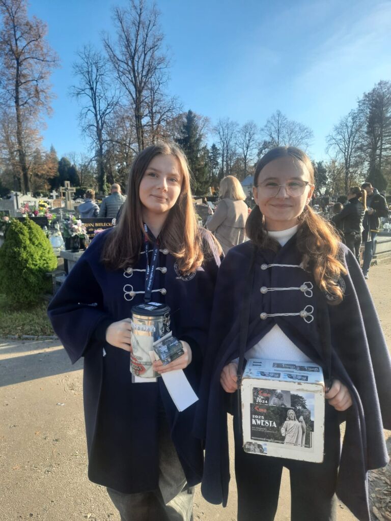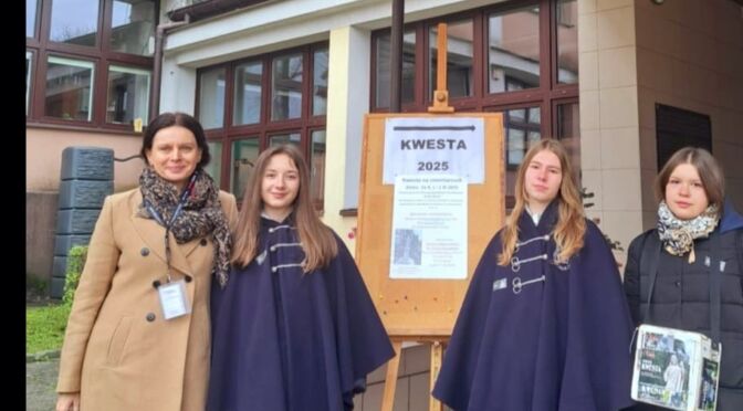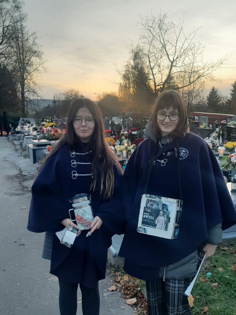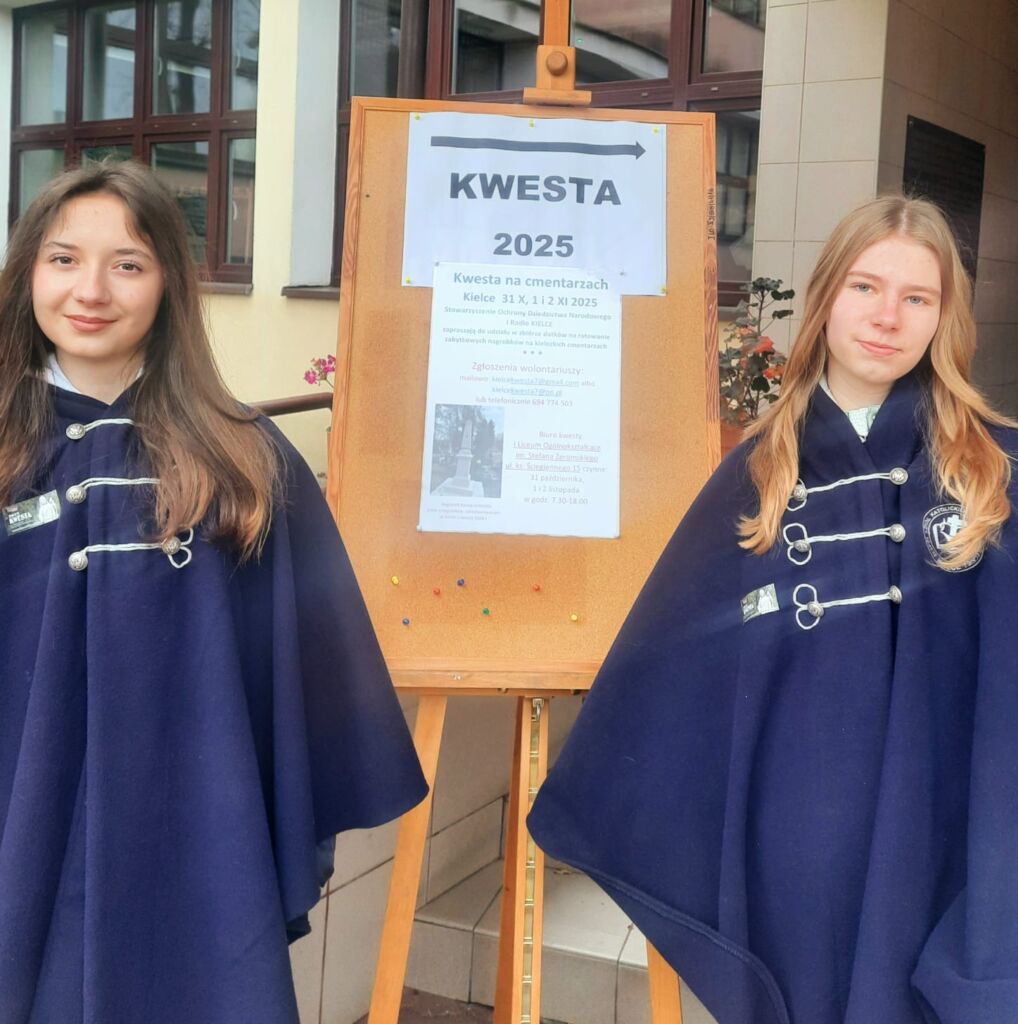 Dnia 1 listopada 2025 roku, kolejny raz uczniowie naszego liceum z opiekunem p. Magdaleną Włodarczyk uczestniczyli w kweście na ratowanie zabytkowych nagrobków. Odbywała się ona po raz 33., a jej organizatorem było Stowarzyszenie Ochrony Dziedzictwa Narodowego w Kielcach. Celem akcji jest zbiórka pieniędzy na remont niektórych starych, zabytkowych nagrobków. Na kieleckich cmentarzach spoczywają ci, którzy mieli wpływ na to, jak na przestrzeni wieków zmieniało się nasze miasto. Cieszymy się, że kolejny raz braliśmy udział w tym ważnym dla naszego miasta wydarzeniu.