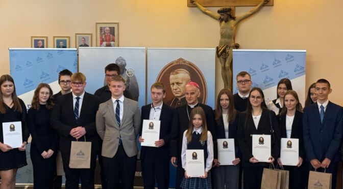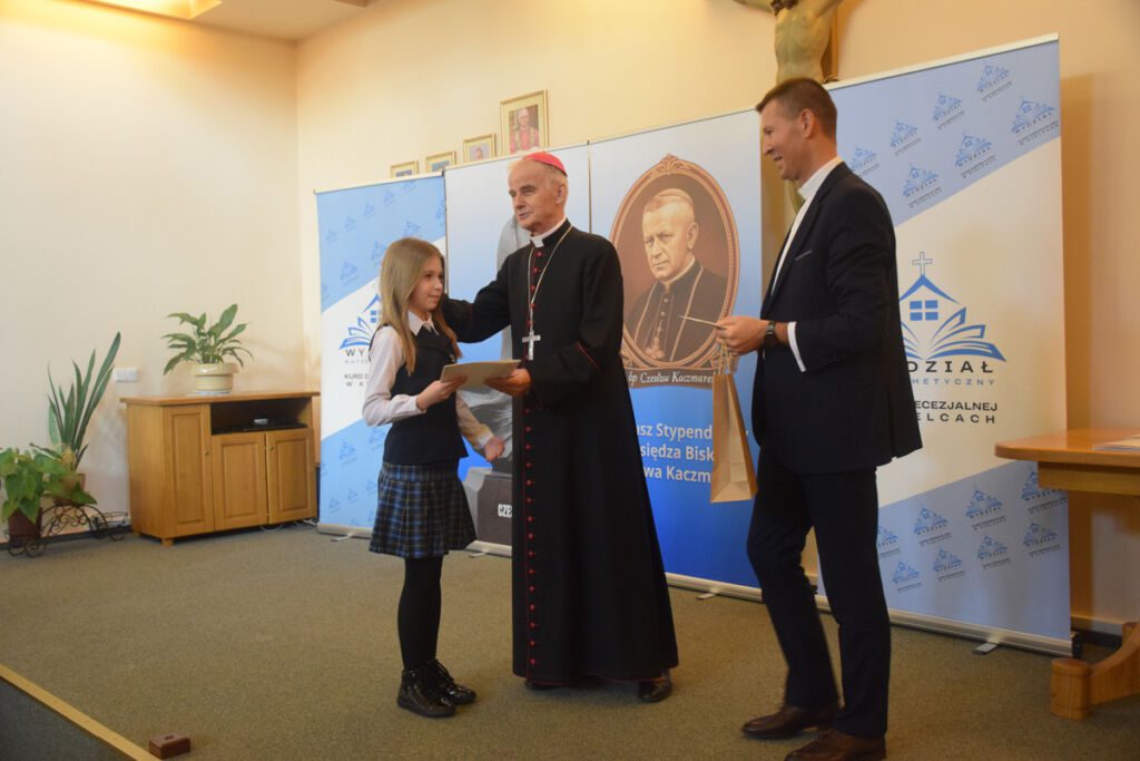 W piątek 14 listopada 2025 r. w siedzibie Kurii Diecezjalnej odbyła się uroczysta gala wręczenia uczniom stypendiów im. Księdza Biskupa Czesława Kaczmarka. Wyróżnienie przyznawane jest młodzieży uzdolnionej i zaangażowanej w życie diecezji lub parafii. W tym roku otrzymali je następujący uczniowie naszej szkoły: Bartosz Wiśniewski z kl. IVA LO, Kacper Kołbuc z kl. IIB LO oraz Alicja Czaja z kl. 6a SP. Serdecznie gratulujemy nagrodzonym !!!