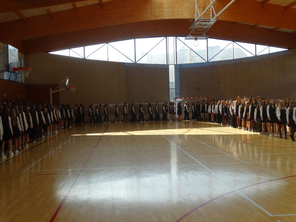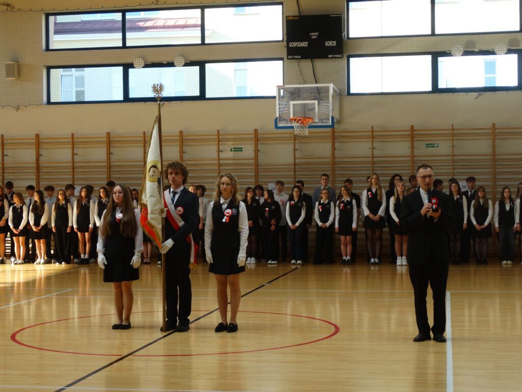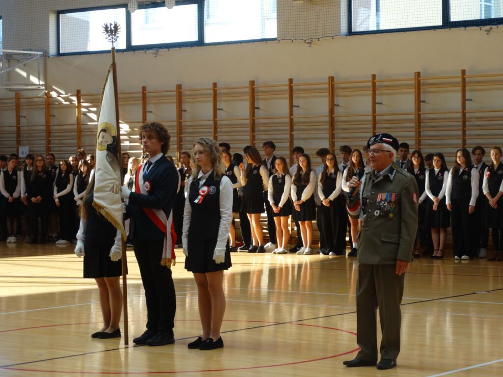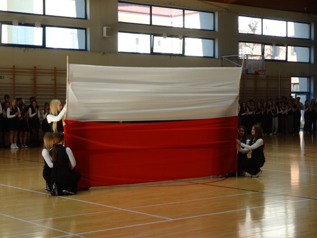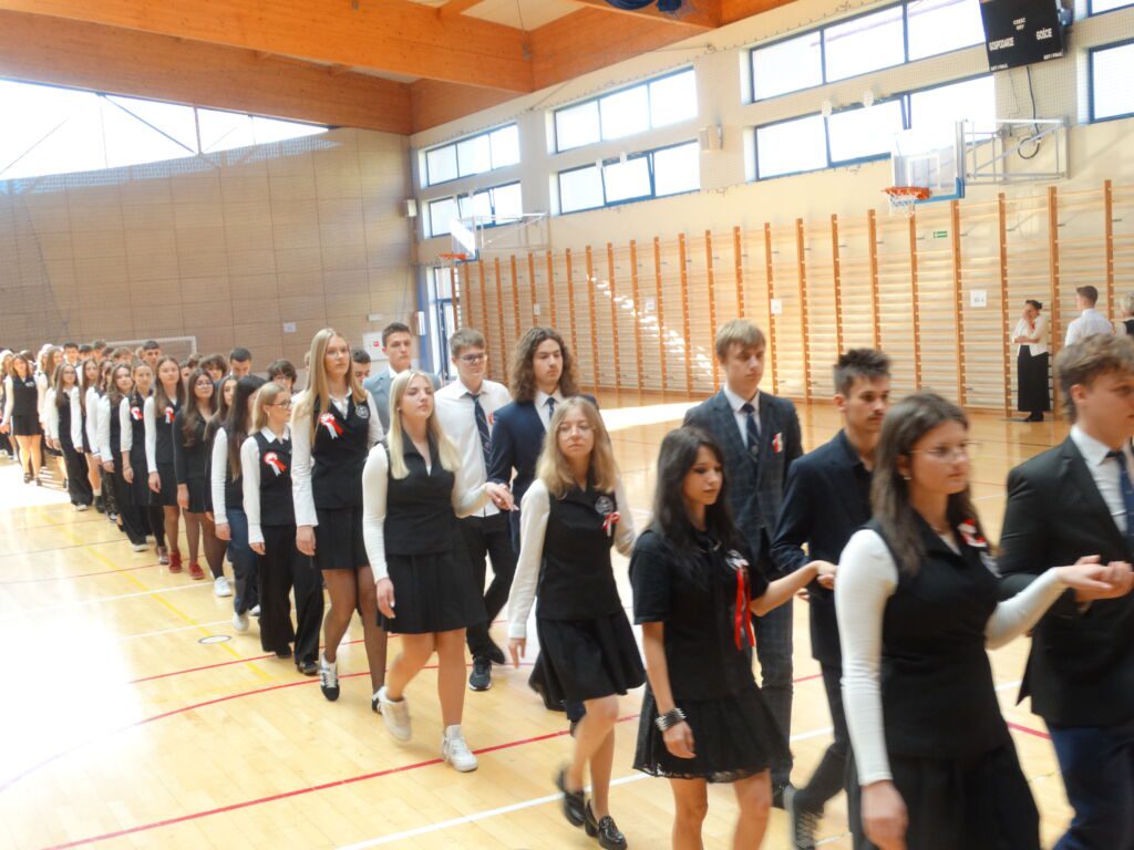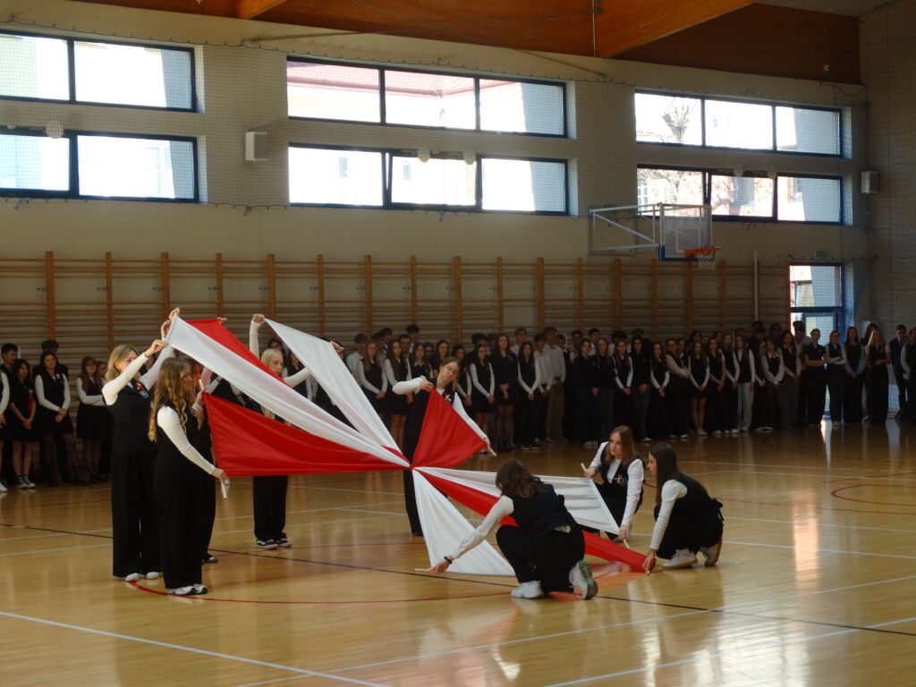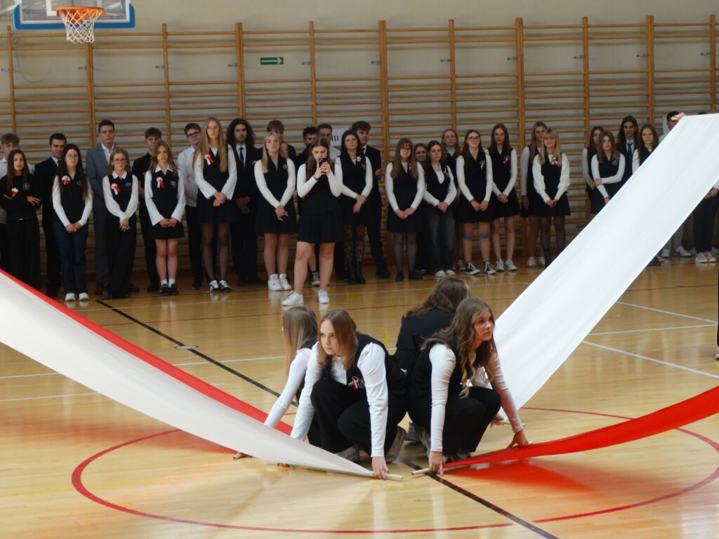 Piątek 7 listopada uczniowie Kostki przeżyli w atmosferze Święta Niepodległości. Cała społeczność szkolna, odświętnie ubrana z akcentem biało-czerwonym o godzinie 11.11 zgromadziła się na hali sportowej, by wspólnie odśpiewać hymn państwowy. Tego dnia gościli w naszej szkole: p. porucznik Jerzy Zawadzki, wyjątkowy gość, uczestnik Powstania Warszawskiego, który po raz kolejny świętował z nami rocznicę odzyskania niepodległości, p. pułkownik Bolesław Kułakowski – emerytowany nauczyciel naszej szkoły, p. Stanisław Rozin ze Stowarzyszenia Osób Represjonowanych w PRL-u, oraz prezes Towarzystwa Szkoły Katolickiej p. Andrzej Ławicki. Pięknym tegorocznym akcentem był taniec z flagami przygotowany przez uczennice z klasy IIB przy akompaniamencie ucznia klasy IC Mikołaja Koszary. Do tradycji KOSTKI należy też odtańczenie poloneza, narodowego tańca wyrażającego piękno polskiej kultury. Licealiści zaprezentowali się w tańcu bardzo pięknie. Korowód 122 par poprowadzili ksiądz dyrektor Jacek Kopeć i pani wicedyrektor Anna Pierzak.
