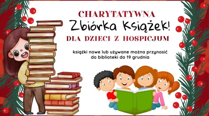 Tuż przed Świętami Bożego Narodzenia Biblioteka szkolna zorganizowała charytatywna zbiórkę książek. Dzięki Waszej hojności dało się  zebrać aż 4 pudła książek. Zostały one przekazane dzieciom z hospicjum. Jesteśmy przekonani, że ten dar serca okazał się wartościowym prezentem, i że dzieci będą z niego chętnie korzystać.